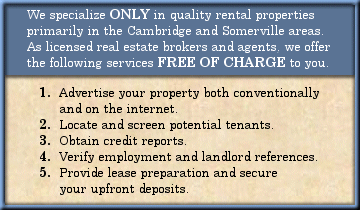 12 Winter Street Davis Square Somerville, MA 02144 Tel: (617) 628-HOME Fax: (617) 591-0465 Copyright © 2007 Boston Rental Exchange, Inc.